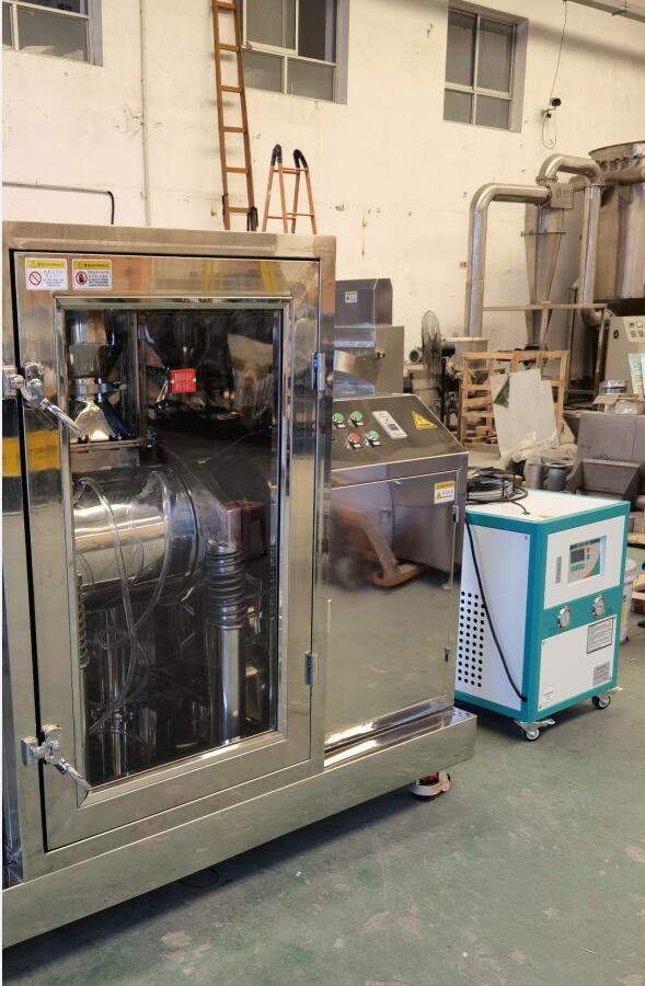 無環(huán)境污染。 細(xì)胞破壁機(jī)系列設(shè)備具有以下特征 1、安全性強(qiáng):與物料接觸的部位均為拋光不銹鋼,其材質(zhì)為國際醫(yī)藥食品機(jī)械通用材質(zhì)(也可根據(jù)用戶要求改為其它金屬材質(zhì))。 2、潔凈衛(wèi)生:內(nèi)外面平滑、一機(jī)多用、減少污染、減輕洗凈作業(yè)負(fù)擔(dān);粉碎過程全密閉無粉塵溢出,充分改善作業(yè)環(huán)境,有效成份不損失。 3、采用復(fù)合(透明)隔聲罩,具有降噪功能。 4、易拆卸(組裝)、易清洗、易換料。可用水、壓縮空氣、酒精、蒸汽等清洗、消毒。 5、操作簡便:容量適配、確保物料完全排出,操作和換料簡便。 6、維護(hù)方便:結(jié)構(gòu)緊湊、占地面積小,維修養(yǎng)護(hù)方便。 7、改善環(huán)境:全密閉作業(yè)無粉塵溢出、有效成份不損失、無藥渣產(chǎn)生,可改善工作環(huán)境。 8、提高效率:高速撞擊力和剪切力的雙向作用,極大地縮短了粉碎時(shí)間,提高粉碎效率。 9、廣譜適應(yīng):對于任何纖維狀、高韌性、高硬度或有一定含水率的物料均可適應(yīng)。對花粉及其它孢子植物等要求打破細(xì)胞壁的物料,其破壁率高于95%。同時(shí)適應(yīng)干式和濕式粉碎。濕式粉碎時(shí)可加入水、酒精或其它液體。 10、溫度可控:通過配置可進(jìn)行高溫、常溫、低溫或超低溫的微粉碎,可以保持物料的原有理化性質(zhì)和活性成份。給磨筒外壁的夾套通入冷水。通過調(diào)節(jié)冷卻水的溫度和流量可控制粉碎溫度。低溫粉碎,冷凍系統(tǒng)最低溫度可達(dá)零下35℃(高檔低溫配置)。[冷凍系統(tǒng)另外購買,標(biāo)配為水冷降溫。]